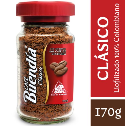 Café Buendía Liofilizado, es un Café con un aroma dulce frutal y un sabor balanceado, propio del café 100% colombiano.